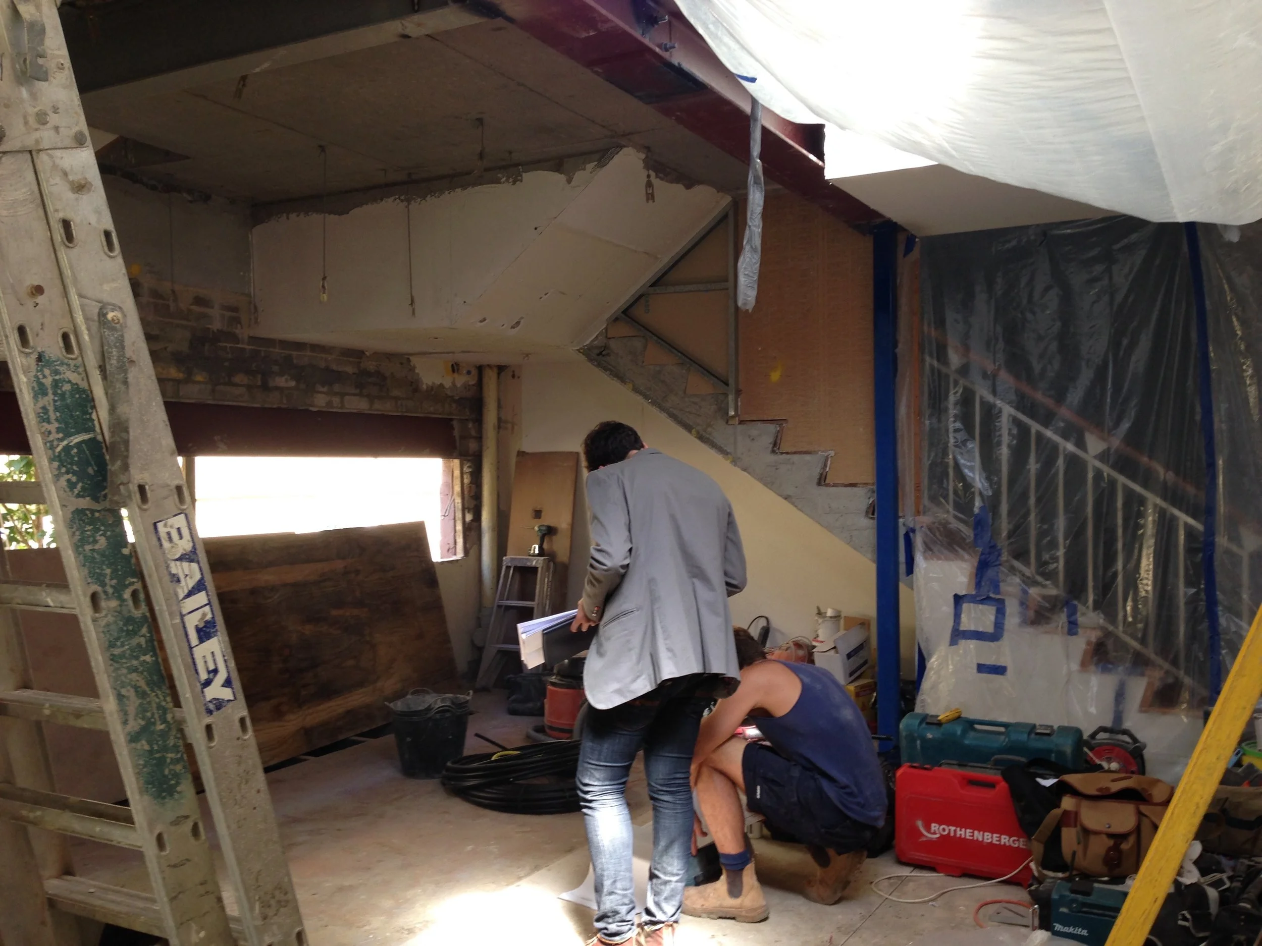One project, two Clients with very distinct expectations, ideals to refurbish the ground floor, kitchen, laundry and bathroom on the southern side of the house. Robert was ‘reservedly conservative’ while Michelle wanted something more ‘rock and roll’ so we settled on pleasing both. A moody palette of deep chocolate brown joinery provides a ‘conservative’ backdrop while a rich blue joinery cabinet dividing the kitchen and laundry providing the theatrical flair. The laundry concealed by a full height pivot door when opened shows a dramatic, decorative complimentary blue interior of wall and ceiling encaustic tiles . To the end of southern wall a full height sliding door cleverly conceals the bathroom finished in Japanese concave blue/green tiles as feature wall, balanced by chocolate brown floor tiles, benchtop and a solid marble vanity top basin. A hint of gold appears as the brass edging to the calacatta viola island unit and a wall of gold mirror to the walk-in pantry keeps the rock and roll attitude alive.