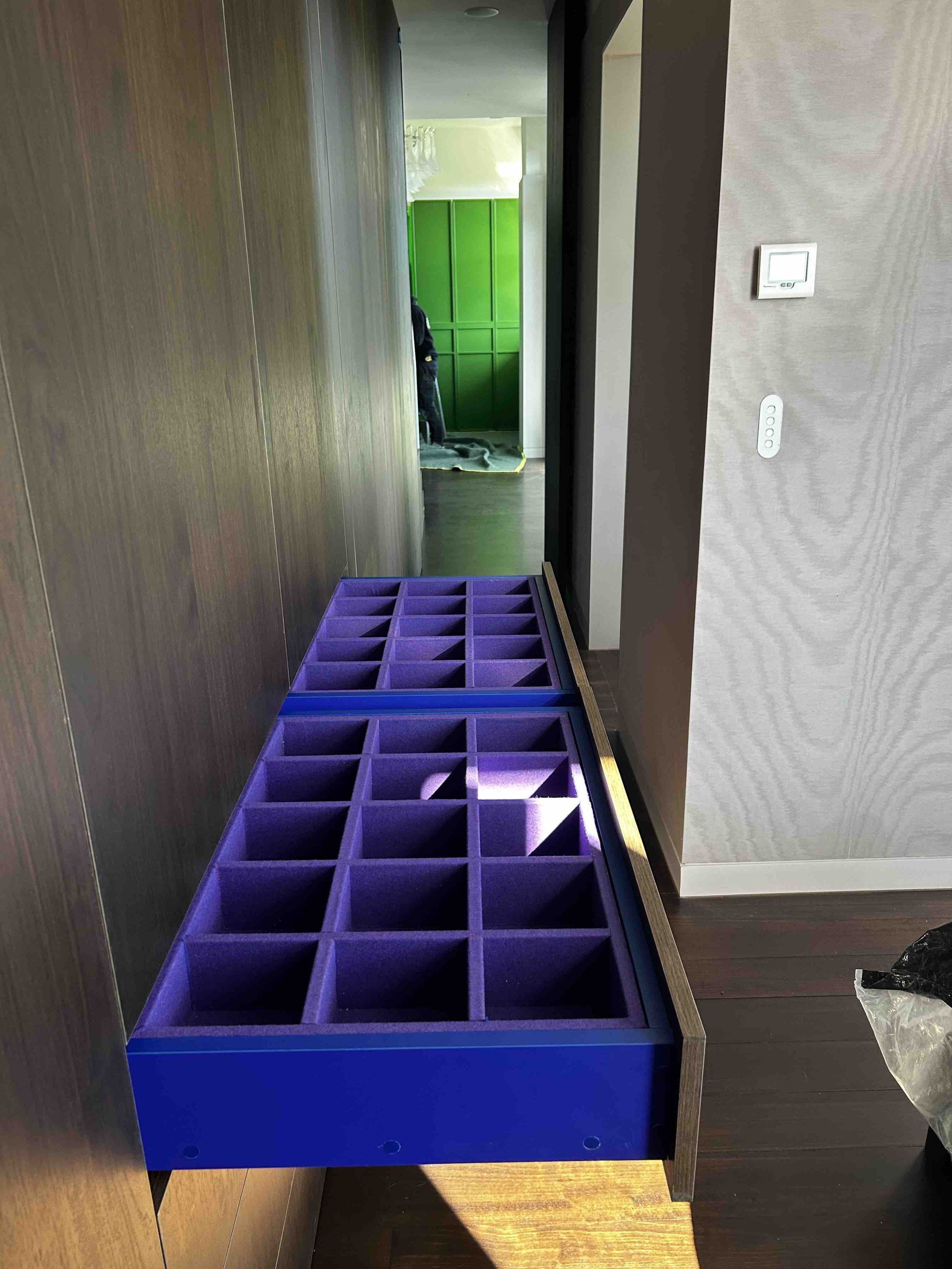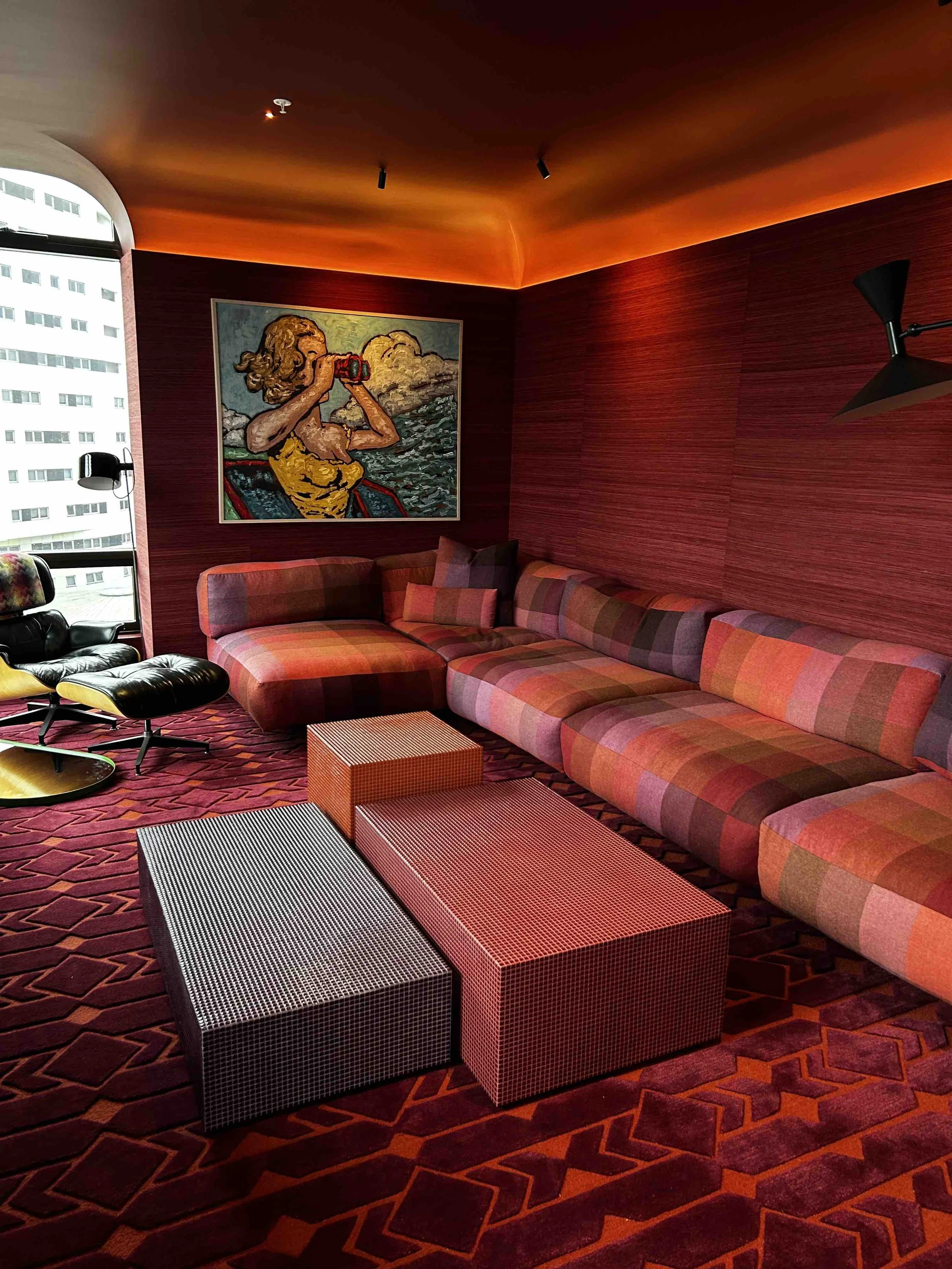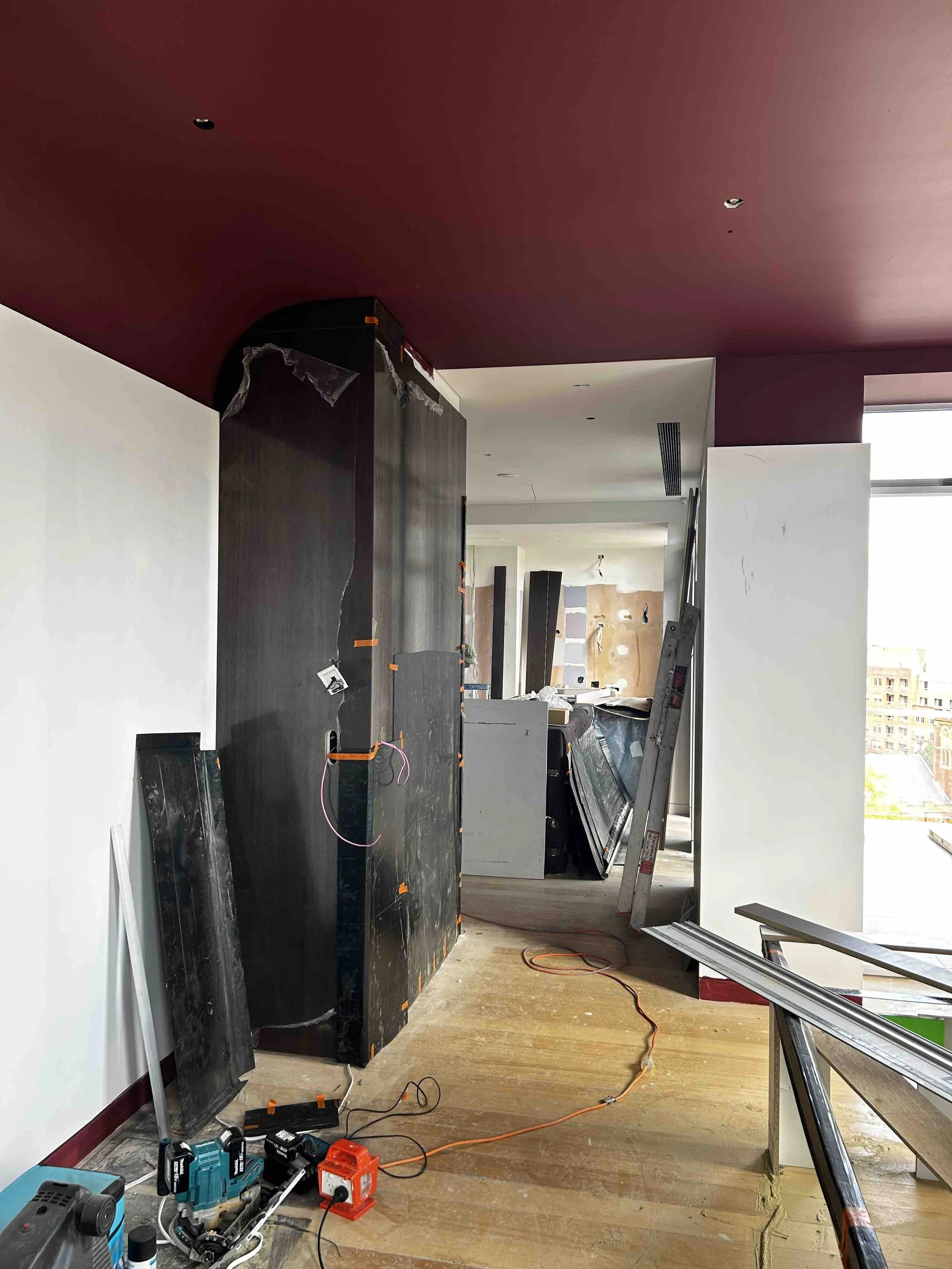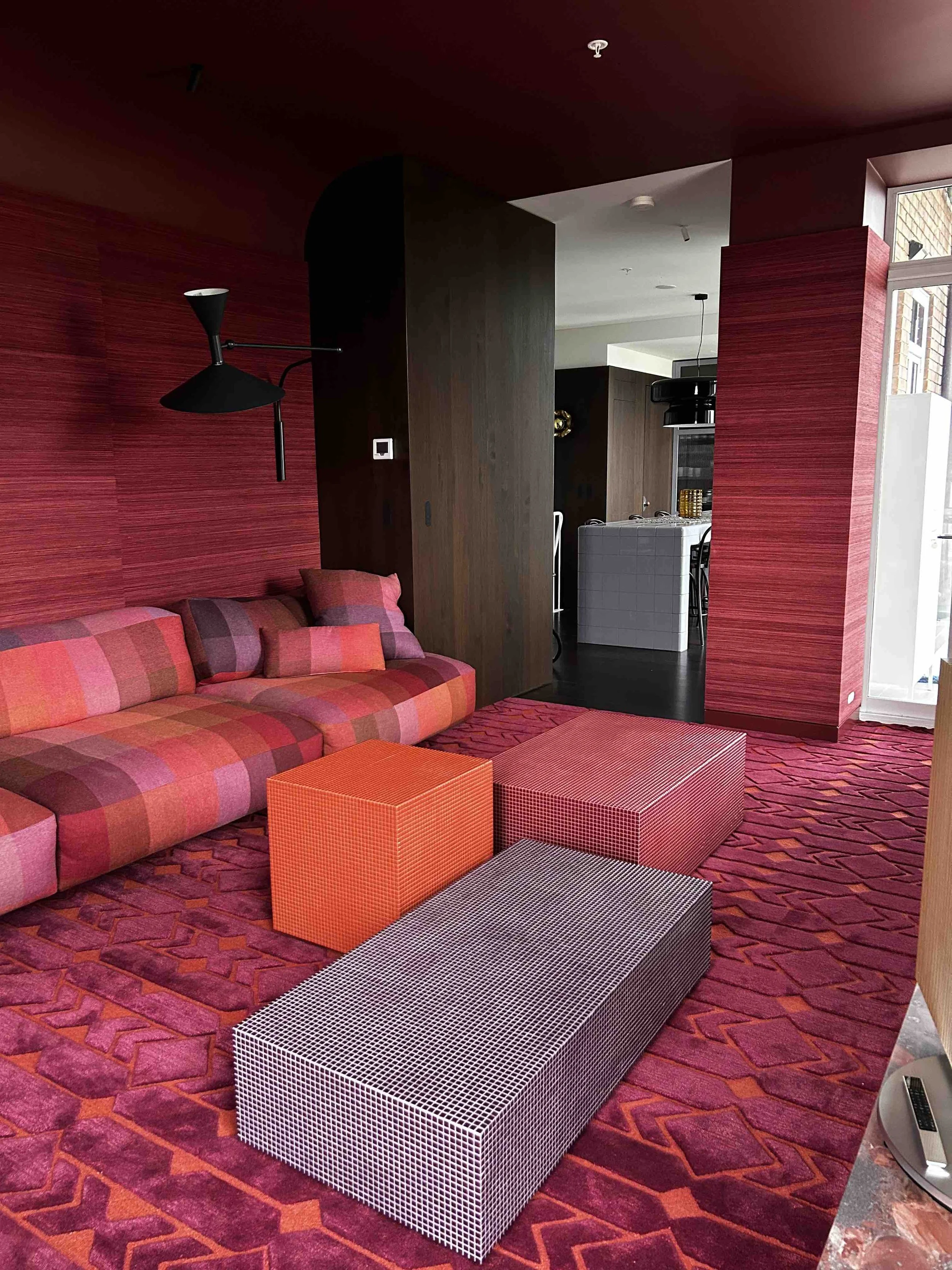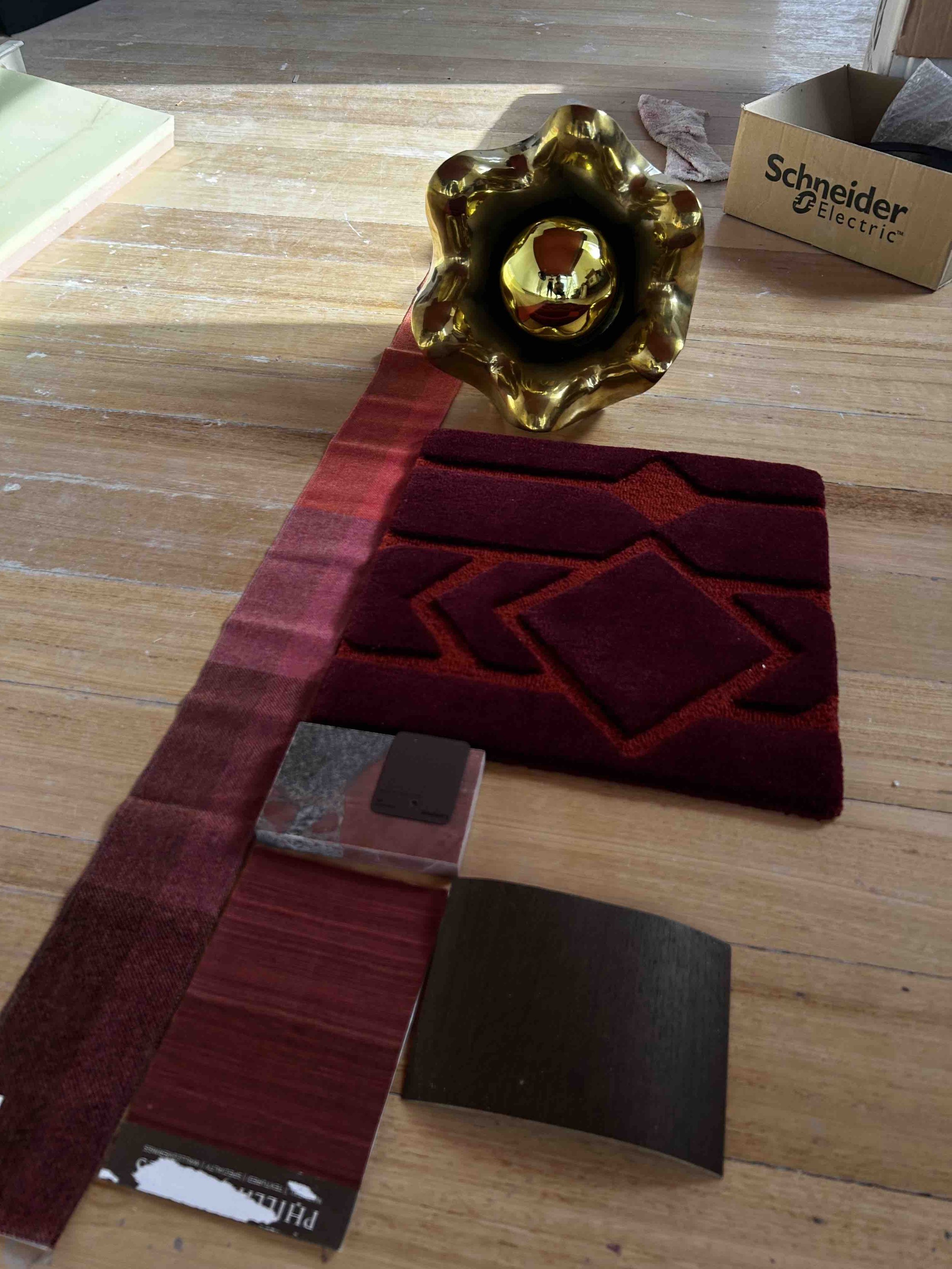 Clockwise from top left: 1. Built in custom seating and colour blocking 2. Dining experiences 3. Kitchen as assemblage of parts 4. Bespoke joinery concealment and delights 5. Perforated steel staircase 6. Poison Ivy meets Pigeon Grey gloss tiling